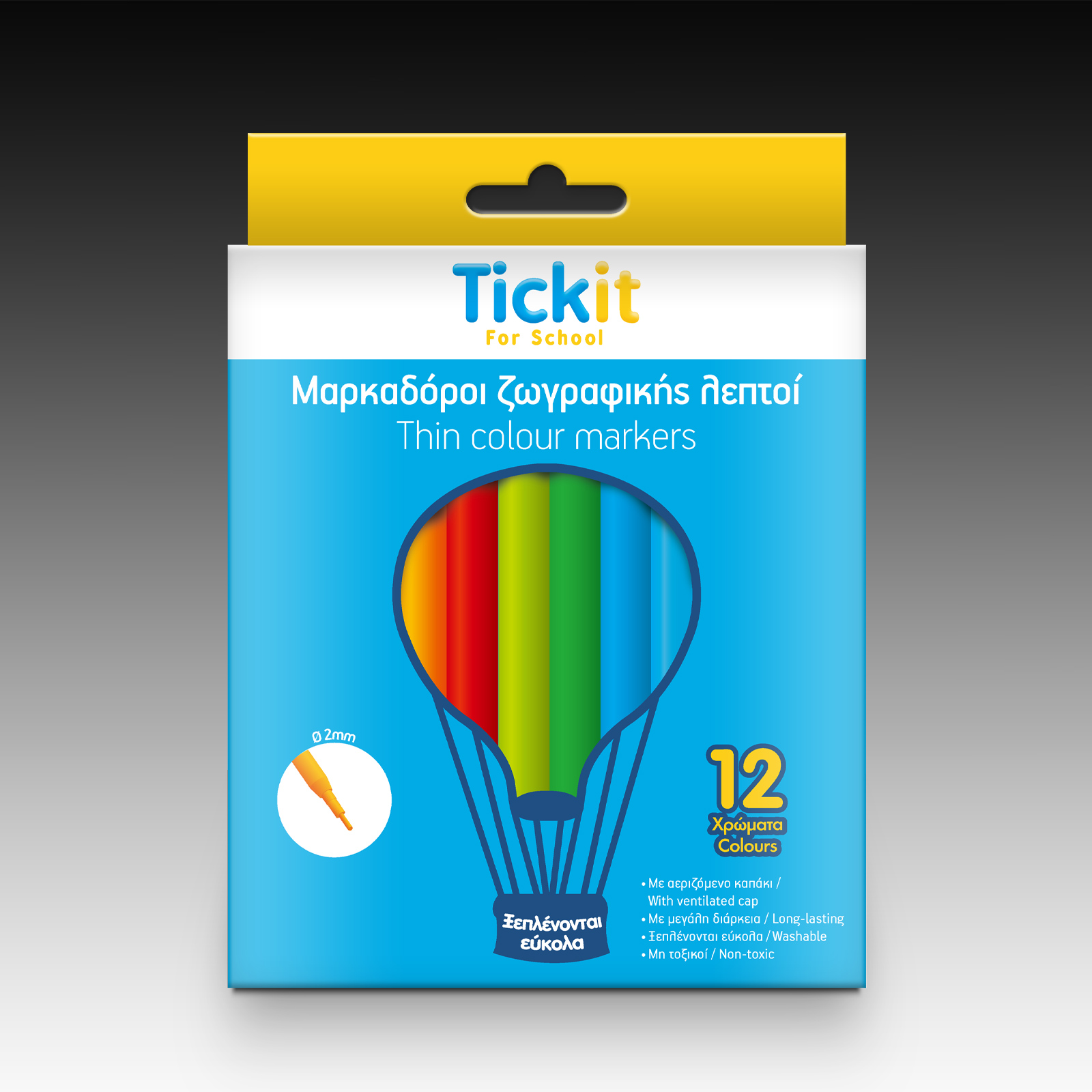 Tickit Μαρκαδόροι Λεπτοί 12 Τεμάχια