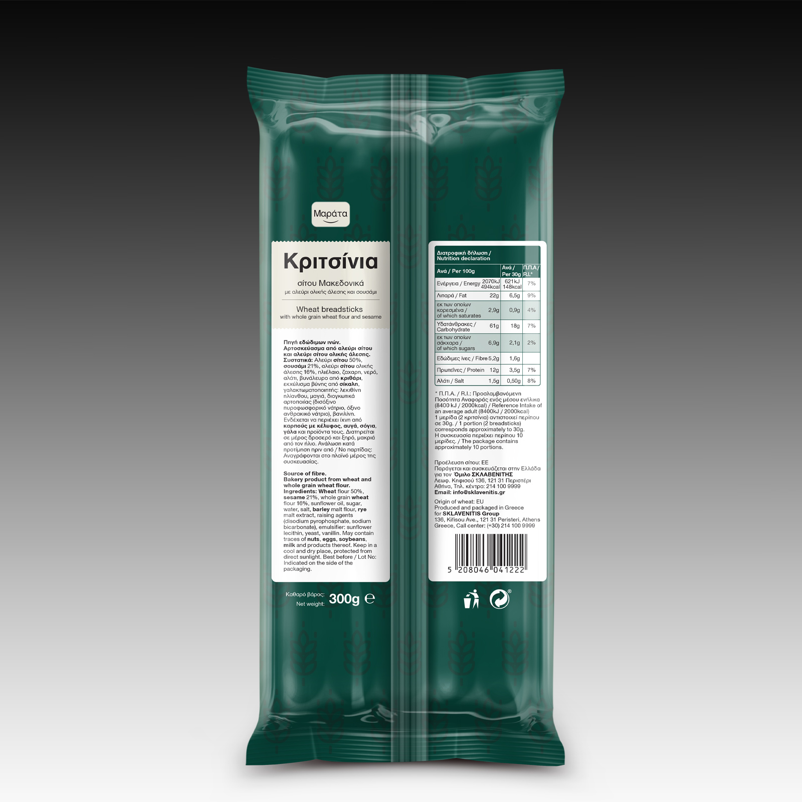 Μαράτα Κριτσίνια Σίτου Μακεδονικά Ολικής Άλεσης Πίσω Πλευρά 300g