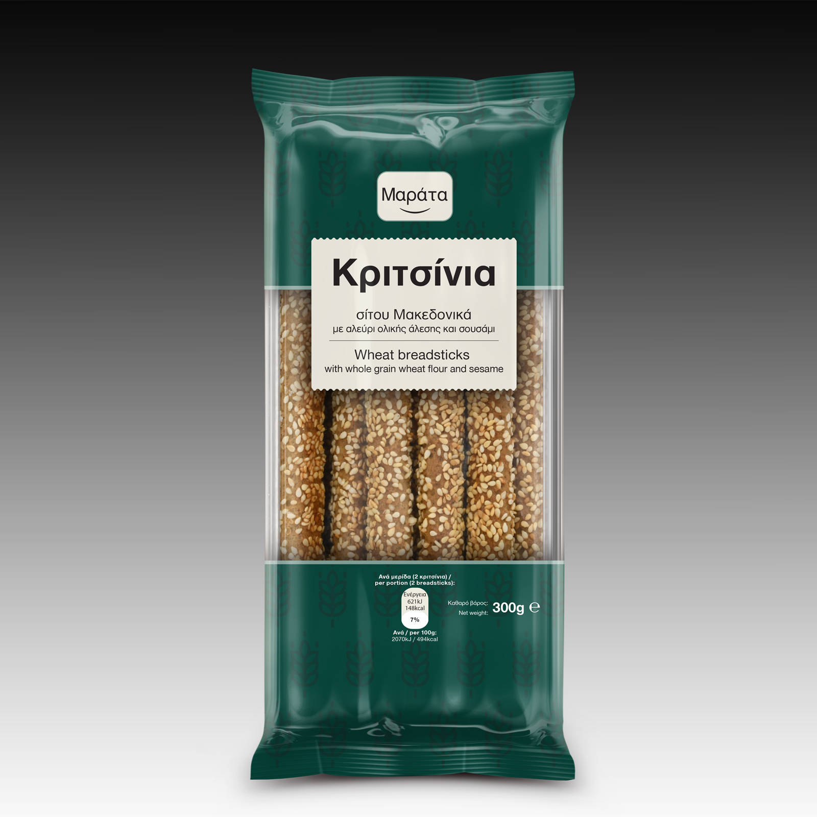 Μαράτα Κριτσίνια Σίτου Μακεδονικά Ολικής Άλεσης Εμπρόσθια Όψη 300g