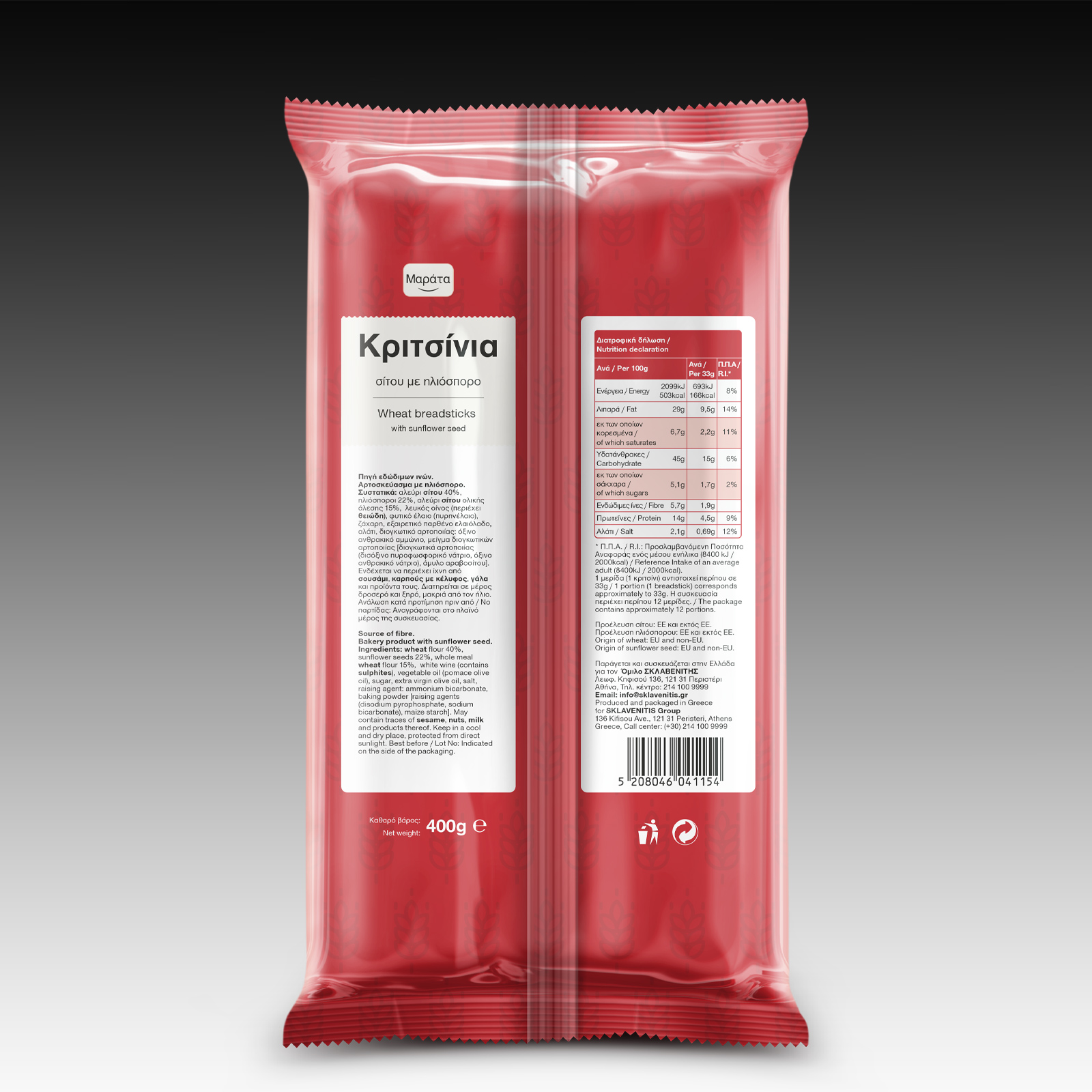 Μαράτα Κριτσίνια Σίτου Με Ηλιόσπορο Πίσω Πλευρά 400g