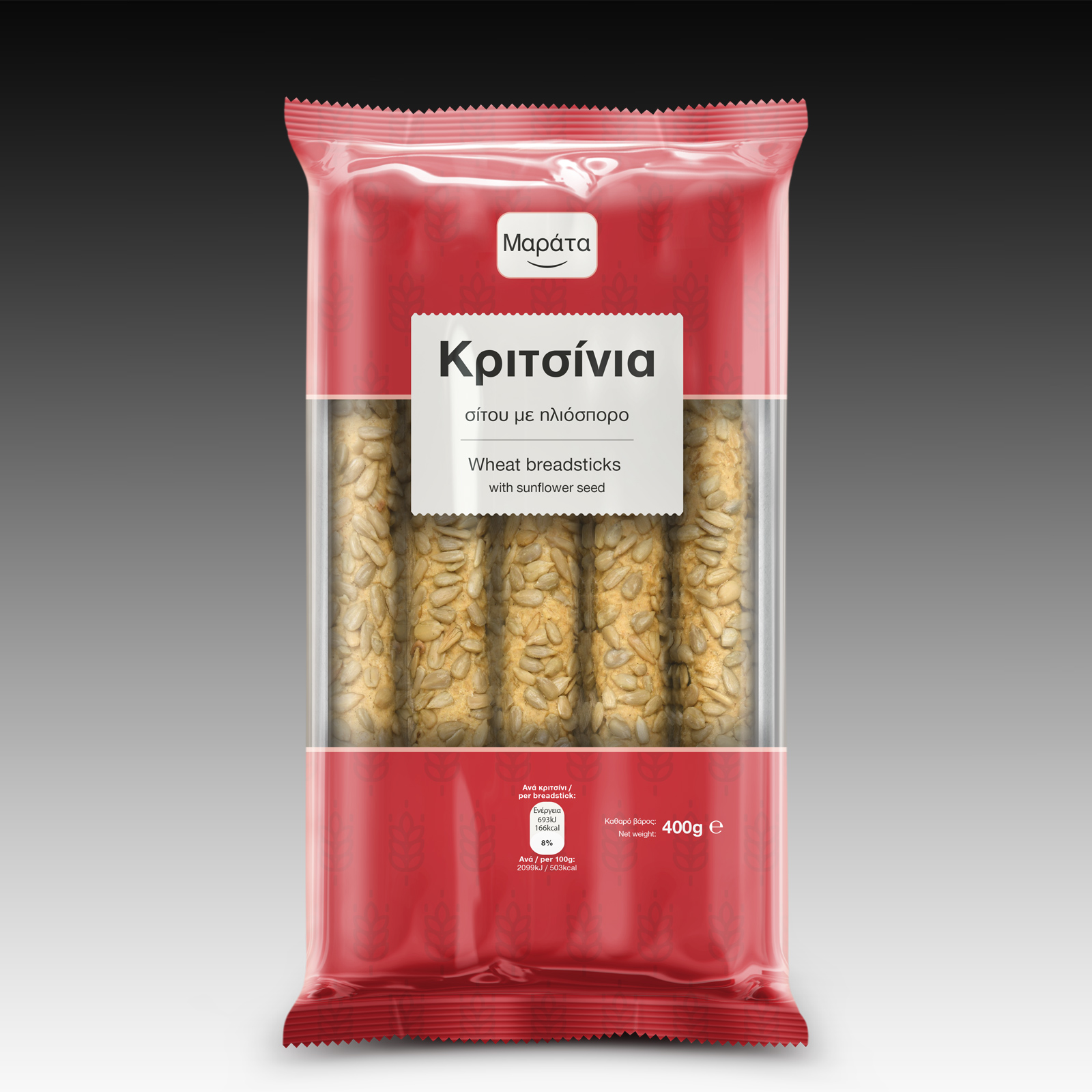 Μαράτα Κριτσίνια Σίτου Με Ηλιόσπορο Εμπρόσθια Όψη 400g