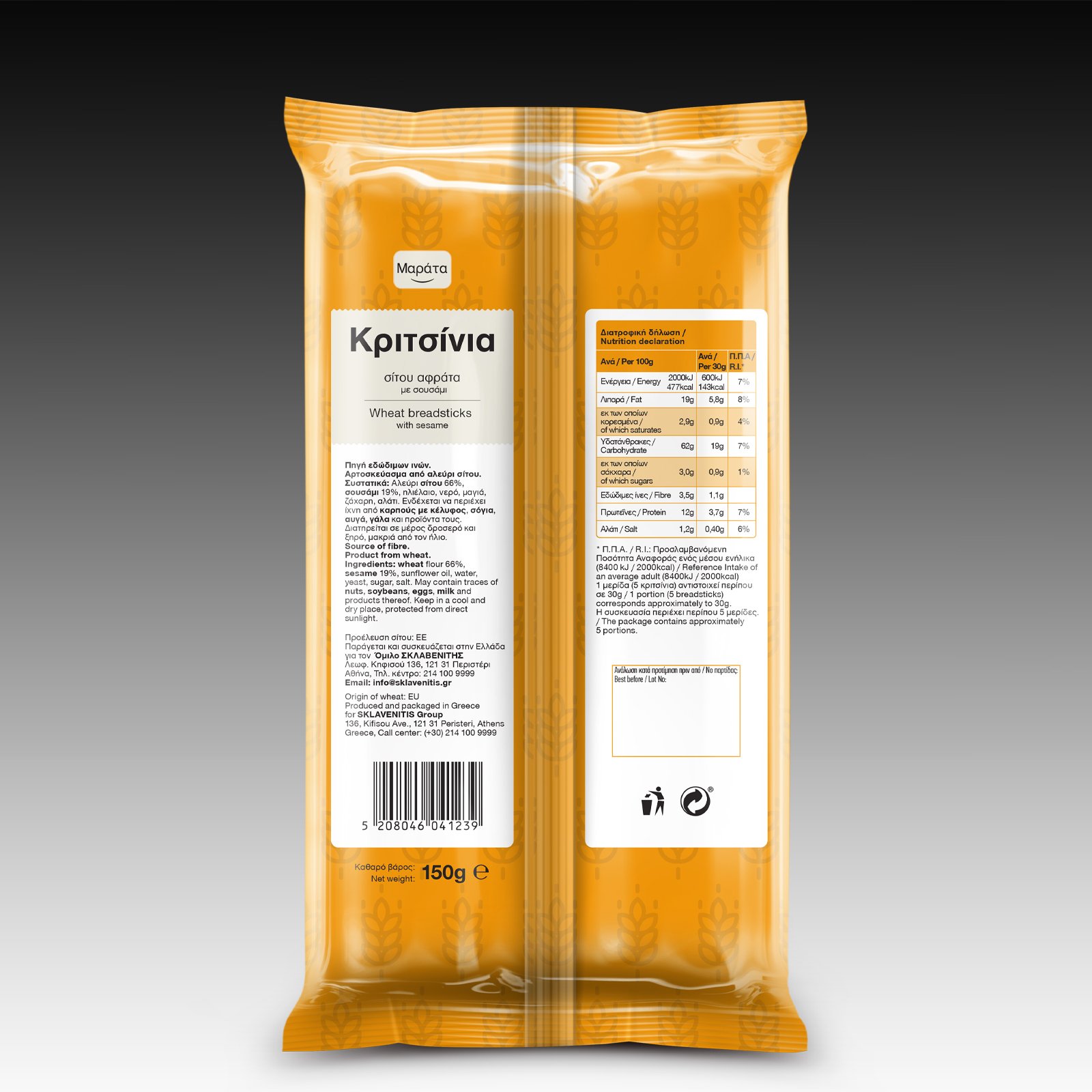 Μαράτα Κριτσίνια Σίτου Με Σουσάμι Πίσω Πλευρά 150g