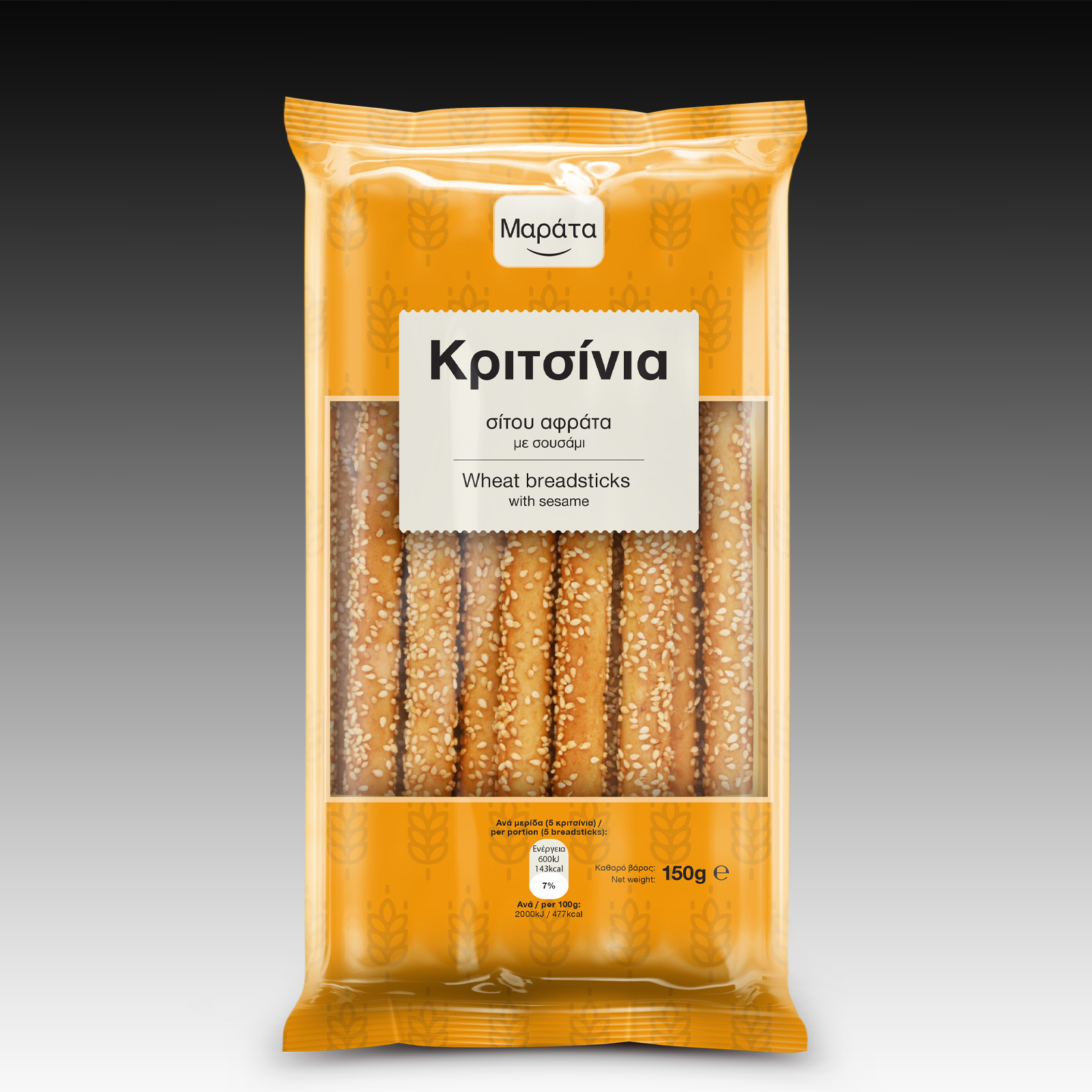 Μαράτα Κριτσίνια Σίτου Με Σουσάμι Εμπρόσθια Όψη 150g